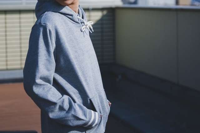 スウェットシャツにフードをつけたものがパーカーになります。